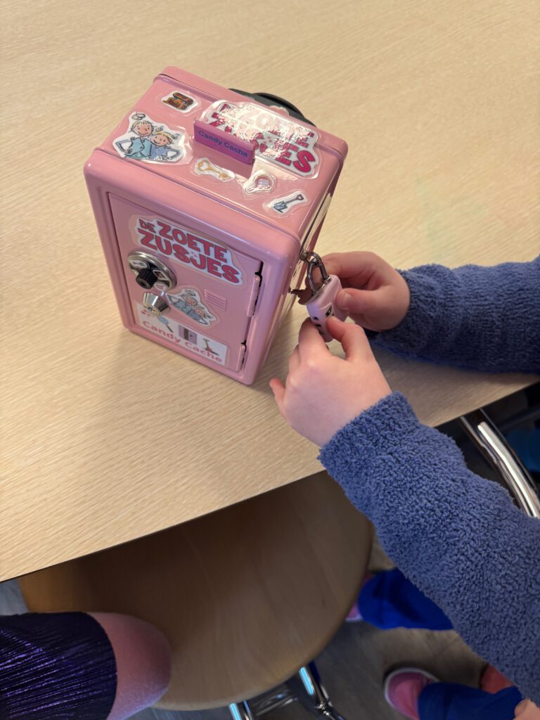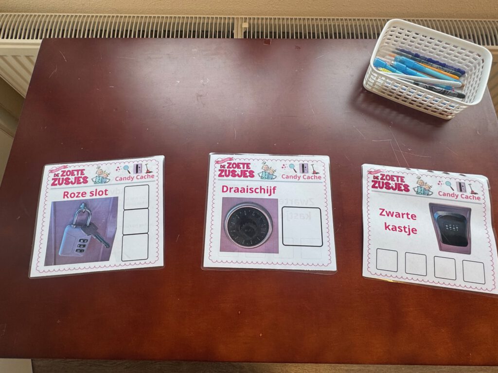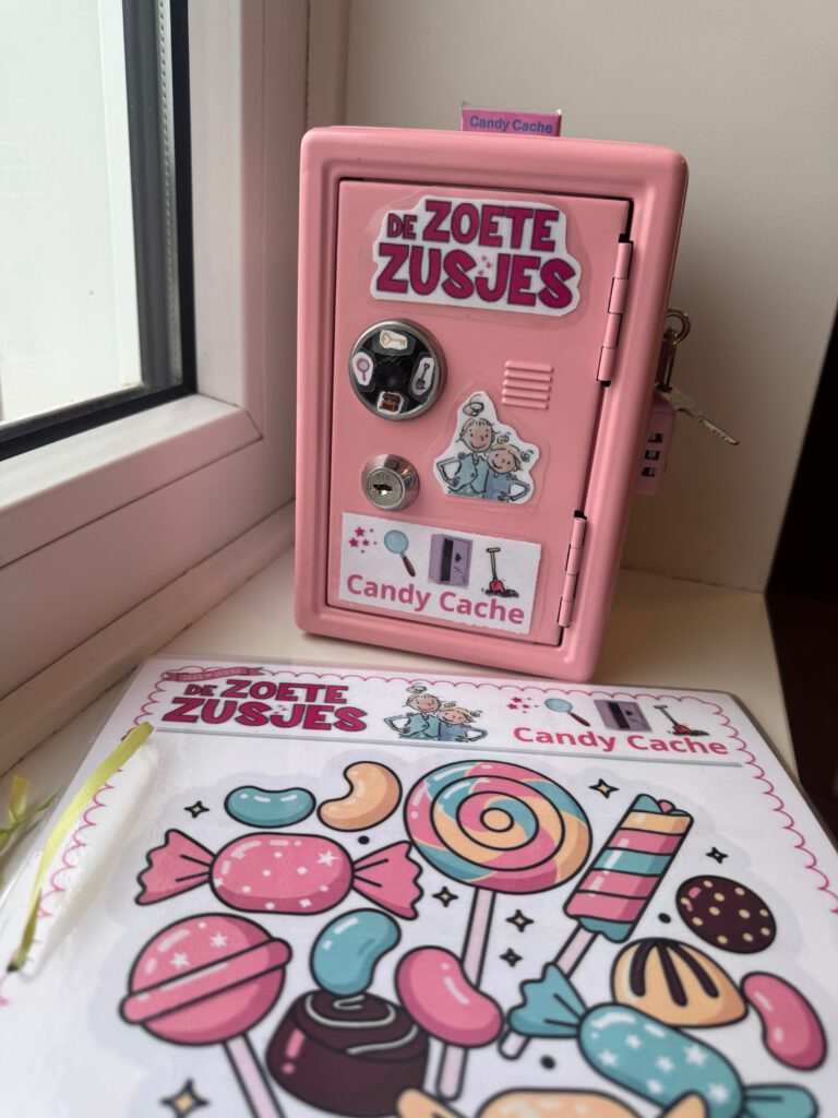 De Candy cache is soort escape room voor kinderen, maar dan moet je zorgen dat je in het kluisje kunt inbreken! En als je dan de codes hebt opgelost, kom je samen bij de schat (candy). Hiervoor moet je op ‘adventure’ en ga je een echte schat zoeken zoals bij Geocaching.