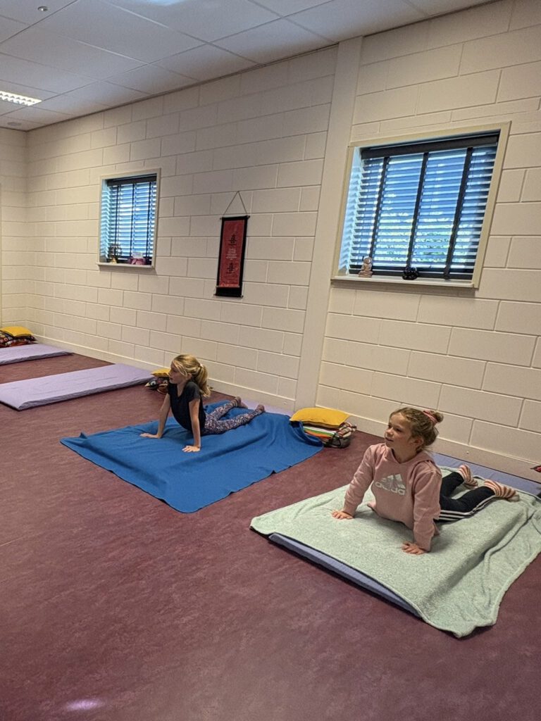 Kinderyoga is een vrolijke mix van bewegen, ontspannen en plezier maken. Het helpt kinderen om te leren ontspannen, hun lichaam te ontdekken, te bewegen en natuurlijk is het om plezier te maken.